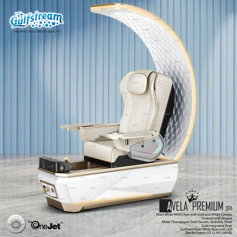 Featured in 2 classic base colourways, the Avela Premium Spa allows salon customers to feel relaxed and rejuvenated with a clean integrated bowl, an all-around functional footrest with an optional integrated air vent, and high-quality matte gold fixtures. Feel confident in your salon with the Avela Premium Spa.